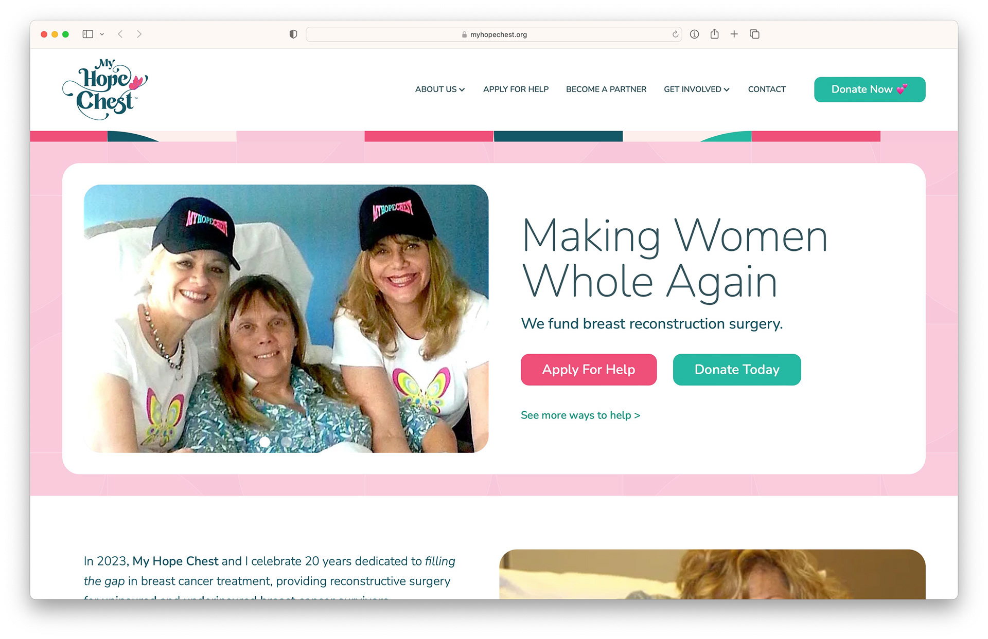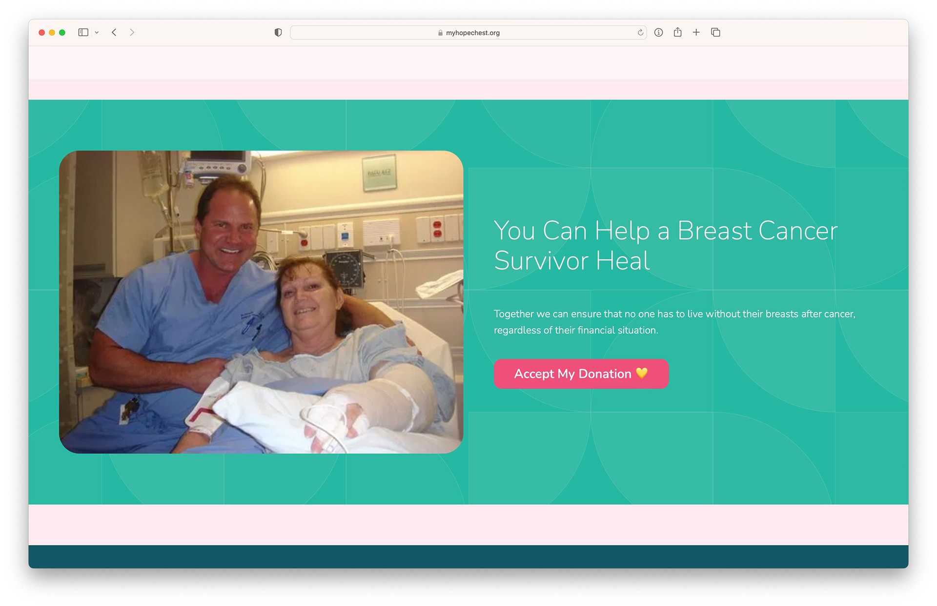 My Hope Chest is the only national 501(c)(3) social service organization focused on providing reconstructive surgery for uninsured and underinsured breast cancer survivors.